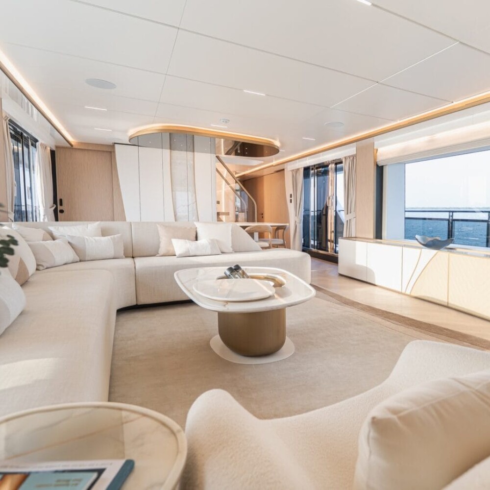 At the core of this evolution lies the Terrace concept: a series of elevated outdoor spaces including the fold-down balconies in the aft cockpit, the multiple terraces across the decks, and the striking private owner’s bow terrace with sweeping 270-degree panoramic views. These features were shaped by direct owner feedback, reflecting a growing preference for stronger connection to the sea, generous open-air social spaces, and secluded retreats that seamlessly integrate with interior living.